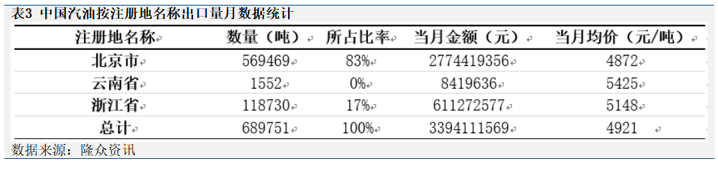 2025年5月,中国汽油出口量按注册地名称统计,排名前三位的为:市、浙江省、云南省。这三个省市合计出口量为68。98万吨,此中市占比达83%。6月国内成品油出口打算量为369万吨(疑惑除后期按照国内供需及出口套利走势变化,因为6月份出口套利倒挂空间收窄,6月国内汽油出口打算量提拔,环比上月涨幅为32%,增加17万吨。前往搜狐,查看更多。