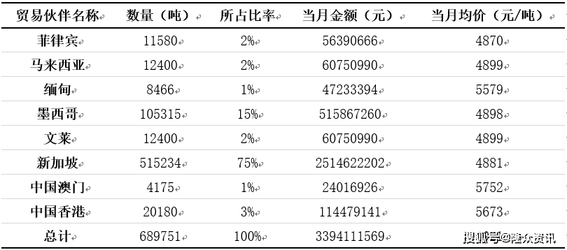 2025年5月,中国汽油出口量按产销国统计,排名正在前五位的别离是:新加坡、墨西哥、中国、菲律宾、马来西亚。这五个国度地域的出口量之和为66。47万吨,约占当月总出口量的96。37%。