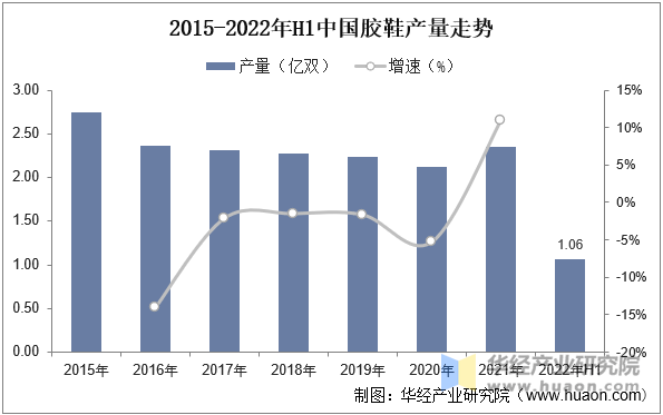胶鞋产量来看,我国胶鞋全体市场需求渐趋饱和,全体产量总体趋稳,近年来根基正在2。5亿双摆布,数据显示,2021年我国胶鞋产量为2。354亿双,同比2020年添加了0。23亿双,2022年上半年来看,我国胶鞋全体产量为1。06亿双,较2021年下降10。43%,次要受全体价钱提拔和上半年疫情频频影响。