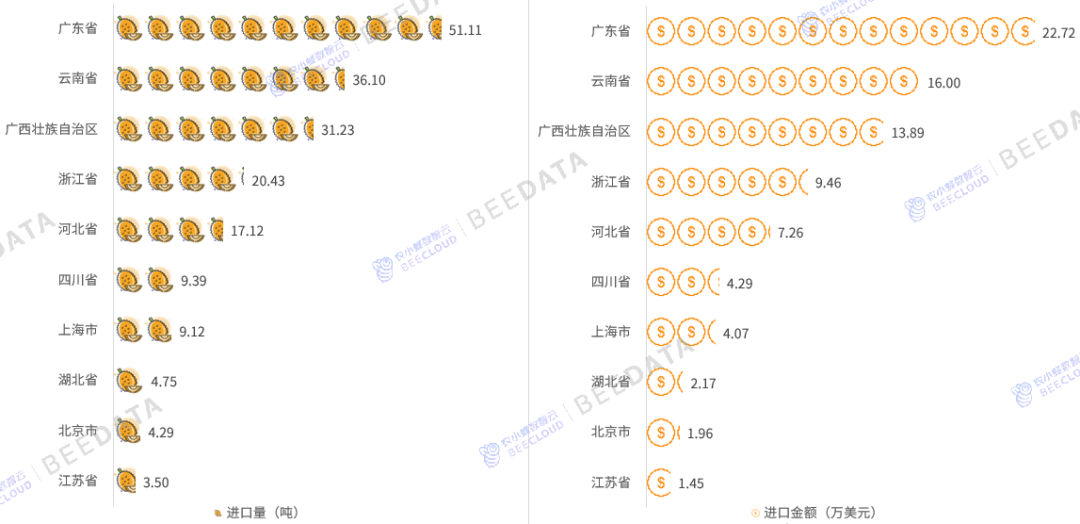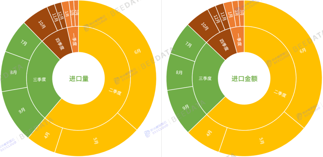 此中,出口的榴莲产物次要销往俄罗斯,广东出口的榴莲次要销往澳门地域,新疆出口的榴莲销往哈萨克斯坦及俄罗斯。2024年,中国上半年进口的榴莲进口量及进口金额正在全年榴莲进口量及进口金额中所占的比力均较着较高,全年榴莲进口次要集中正在第二季度;此中,6月份榴莲进口量及进口金额正在全年榴莲进口量及进口金额中所占的比沉别离为36。52%、36。04%,是全国榴莲进口规模最大的月份。