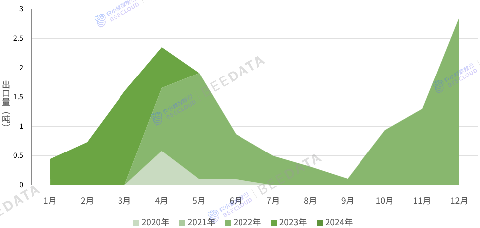 2024年,中国没有榴莲出口销往国际市场,积年出口的榴莲也因为出口规模较着较小,未构成较着的分布态势;