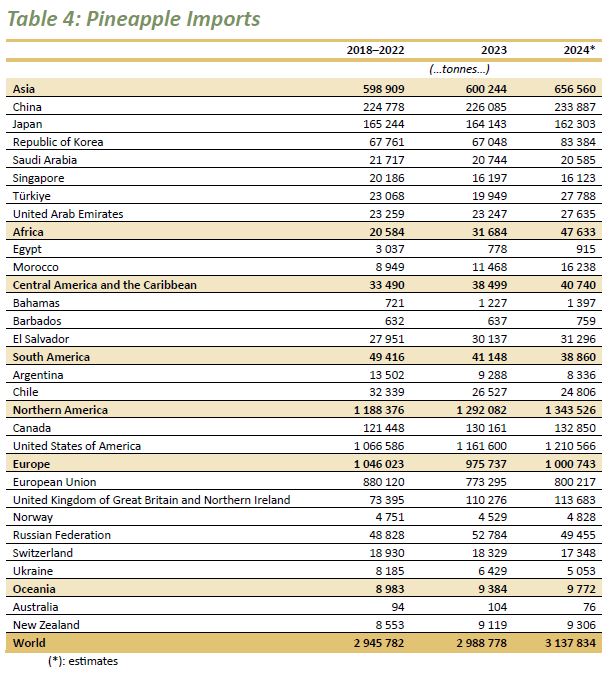结合国粮农组织FAO,2025年1月正在意大利罗马最新发布了《2024全球次要热带生果商业市场回首初步演讲》,此中“次要热带生果”包罗以界海关组织协调轨制下的HS代码:080430(菠萝);080440(牛油果);080450(芒果。
