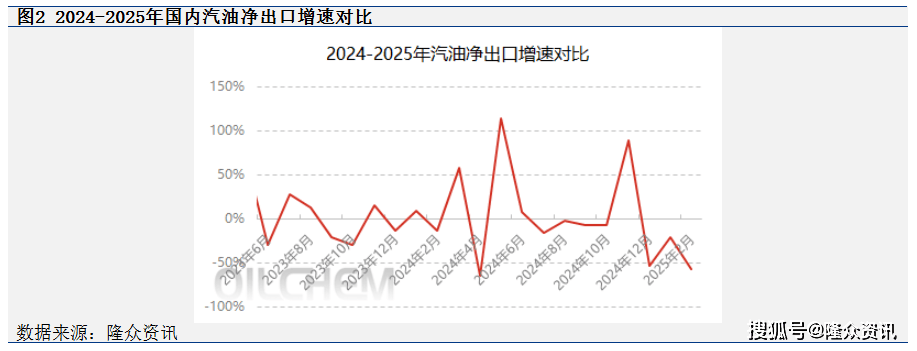 2025年1月中国汽油进口3。65万吨,较上月增加100%。2025年1月累计进口量为3。65万吨,较客岁同期涨100%。2025年2月中国汽油出口19。9万吨,较上月回落30万吨,降幅为60。1%。2025年1-2月累计出口量为69。92万吨,较客岁同期下降86。96万吨,降幅为55。4%。进口:2月进口量为0万吨,春节假期前后,汽油需求逐渐转淡,私人车出行频次及范畴收窄,用油回落,以及国内汽油资本供大于求,进口量根基维持正在0吨的程度。出口:2月出口量缩小,同比降幅为60。1%,从因2月份适逢春节假期,汽油以保供国内为从,且出口利润倒挂,出口量响应下降。