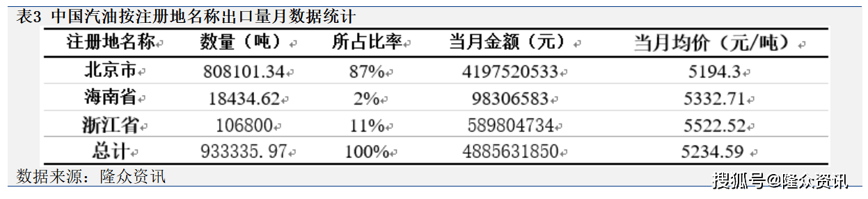 2025年3月,中国汽油出口量按注册地名称统计,排名前三位的为:市、浙江省、海南省。这三个省市合计出口量为93。3万吨,此中市占比达87%。4月国内成品油出口打算量为322万吨(疑惑除后期按照国内供需及出口套利走势变化,有调整出口打算量的可能性)。因为4月份国内汽油需求存期近将到来的五一假期提振,加之出口套利倒挂,环比上月降幅为15。71%,下降11万吨。前往搜狐,查看更多?。