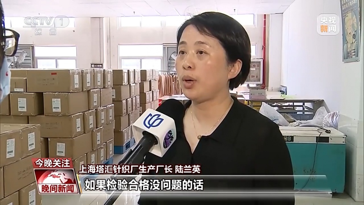 上海塔汇针织厂出产厂长 陆兰英:客人其实也很焦急,曾经订好5月17日的集拆箱,若是查验及格没问题的线日就起头连续出运了。